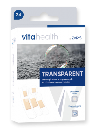 Zestaw plastrów transparentnych przeznaczony do opatrywania drobnych ran i skaleczeń zwłaszcza na dłoniach lub twarzy.